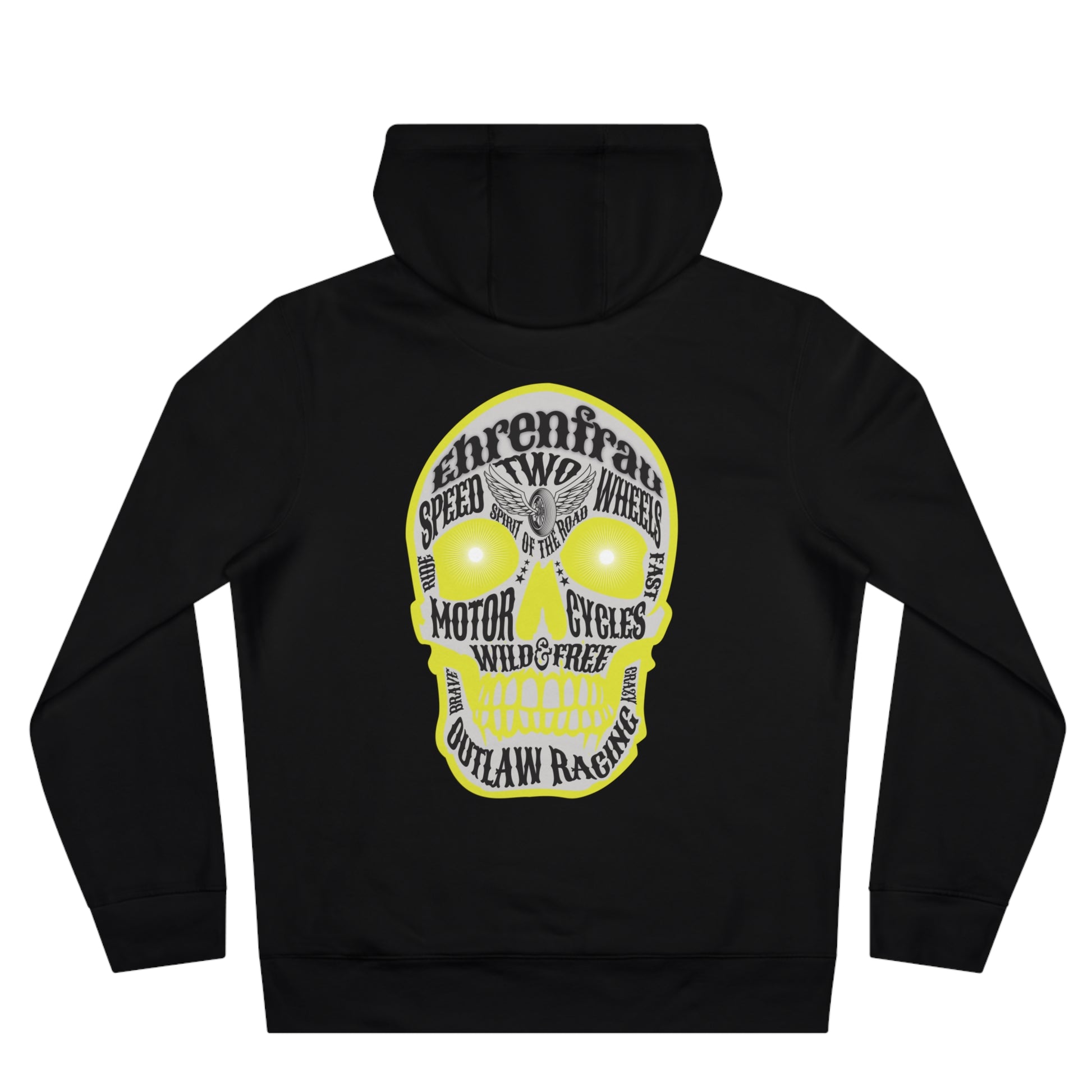 Der Ehrenfrau-Hoodie verbindet rebellischen Biker-Spirit mit hochwertigem Tragekomfort. Der große Skull-Print auf dem Rücken zieht garantiert Blicke auf sich und ist perfekt für alle, die Power, Freiheit und Charakter leben. Ob auf dem Bike, beim Treffen mit der Crew oder im Alltag - dieser Hoodie zeigt, wofür du stehst: Two Wheels. One Life. 100% Rebel Energy.