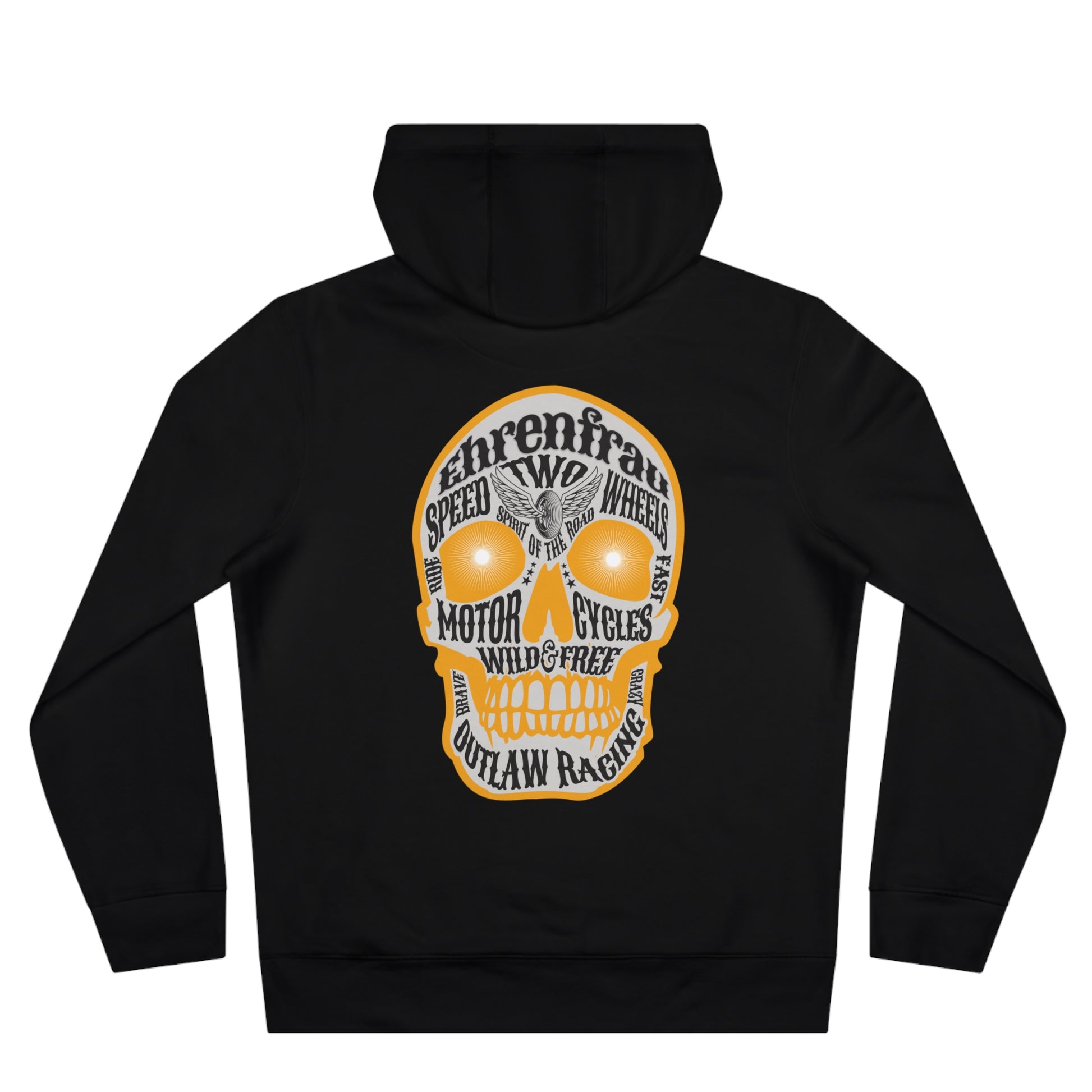 Der Ehrenfrau-Hoodie verbindet rebellischen Biker-Spirit mit hochwertigem Tragekomfort. Der große Skull-Print auf dem Rücken zieht garantiert Blicke auf sich und ist perfekt für alle, die Power, Freiheit und Charakter leben. Ob auf dem Bike, beim Treffen mit der Crew oder im Alltag - dieser Hoodie zeigt, wofür du stehst: Two Wheels. One Life. 100% Rebel Energy.
