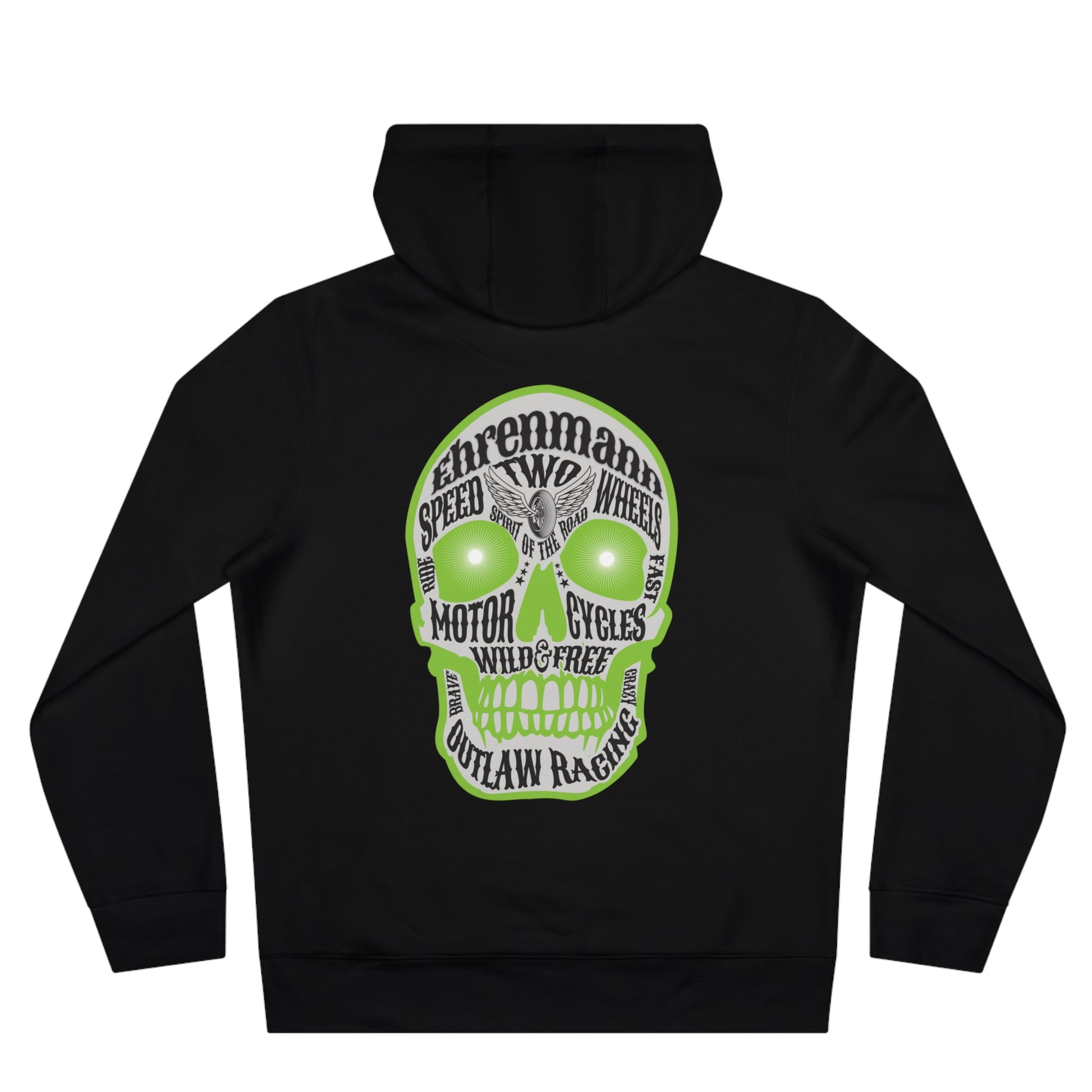 Der Ehrenmann-Hoodie verbindet rebellischen Biker-Spirit mit hochwertigem Tragekomfort. Der große Skull-Print auf dem Rücken zieht garantiert Blicke auf sich und ist perfekt für alle, die Power, Freiheit und Charakter leben. Ob auf dem Bike, beim Treffen mit der Crew oder im Alltag - dieser Hoodie zeigt, wofür du stehst: Two Wheels. One Life. 100% Rebel Energy.